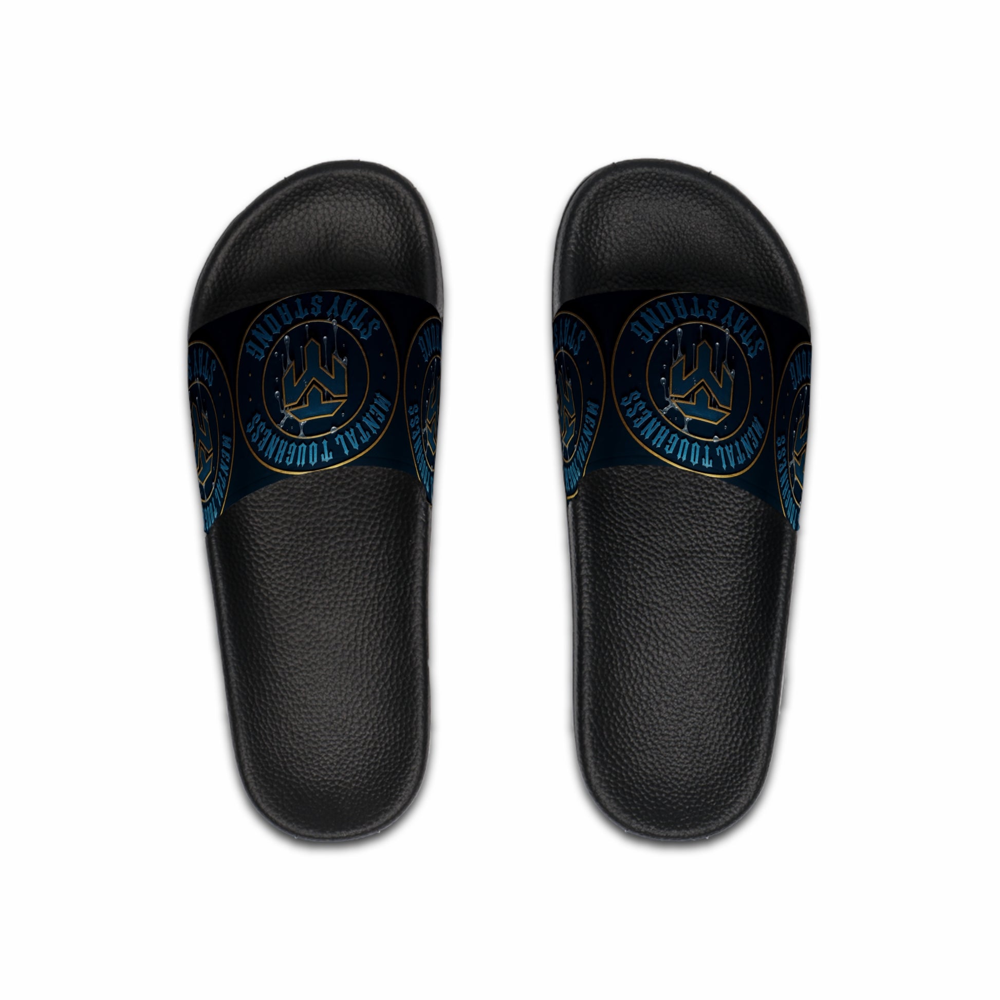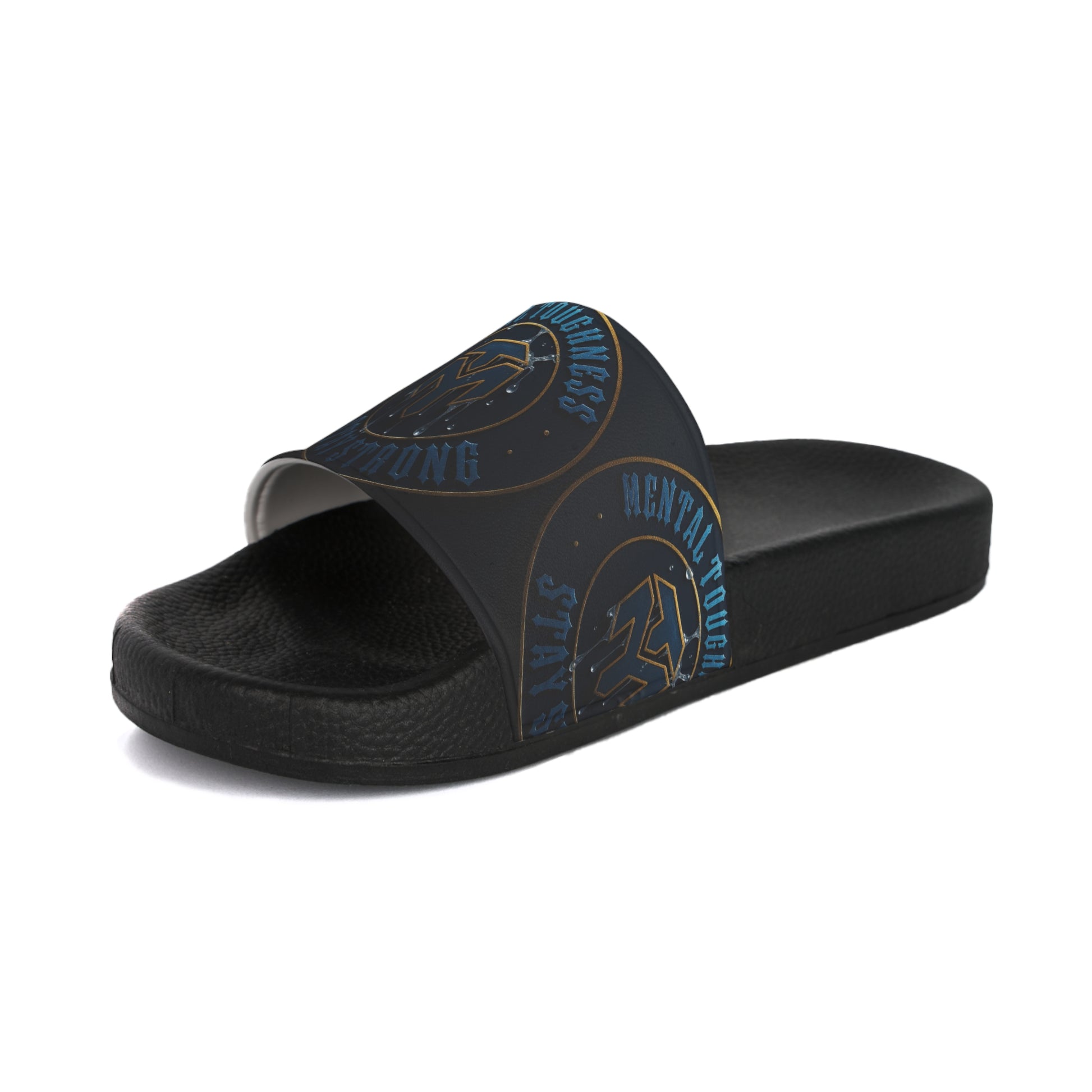 Men's Slide Sandals — 'Strength & Toughness' Blue Emblem Athletic Slides
