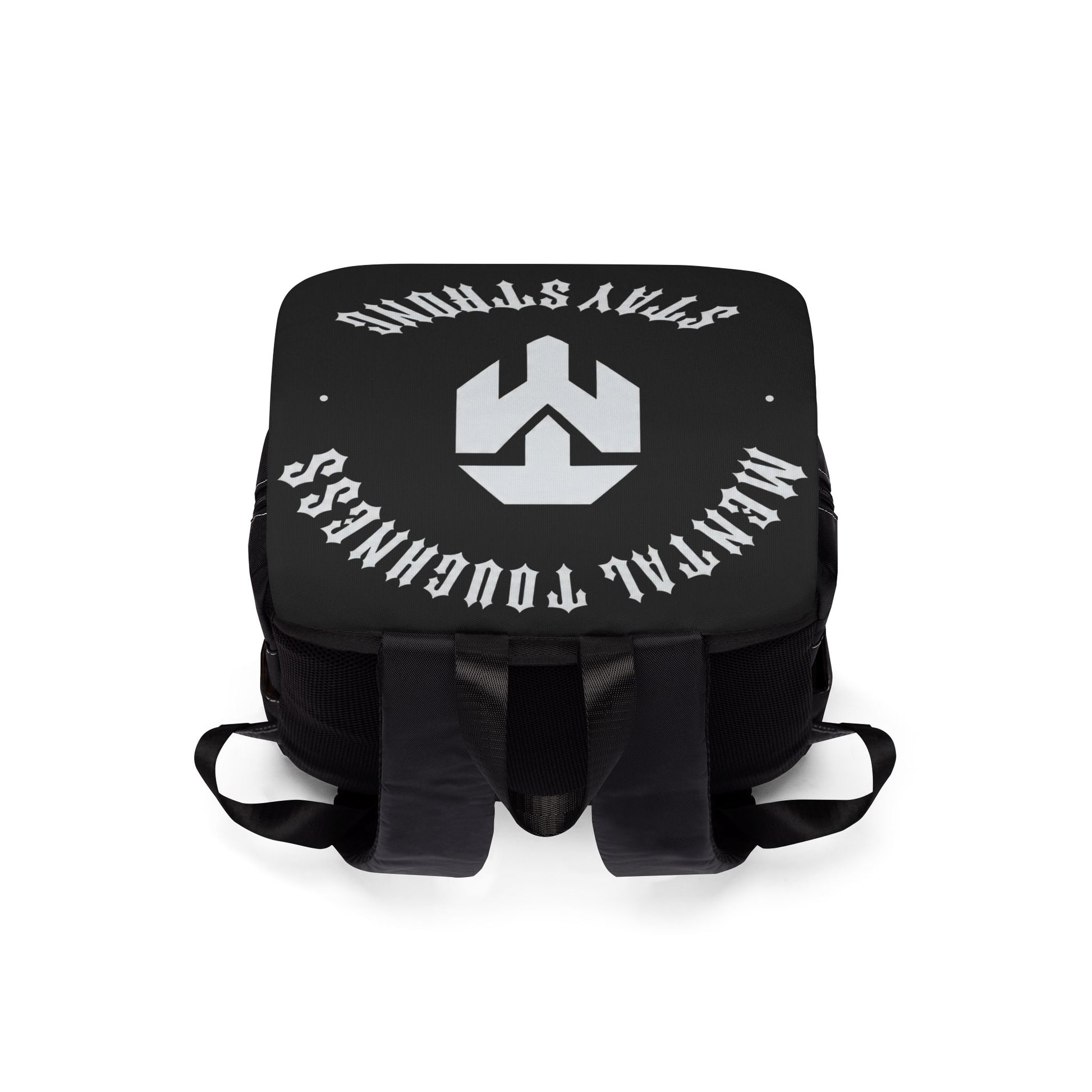 Stay Strong Backpack — Black Casual Shoulder Backpack with Bold Typography & Emblem
